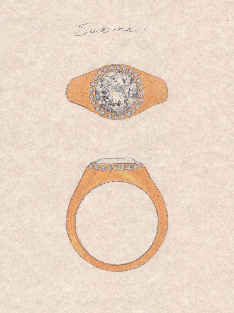 The process usually includes a series of sketches, stone sourcing, and wax models for review. Many clients also choose to add hand engraving as a final detail.